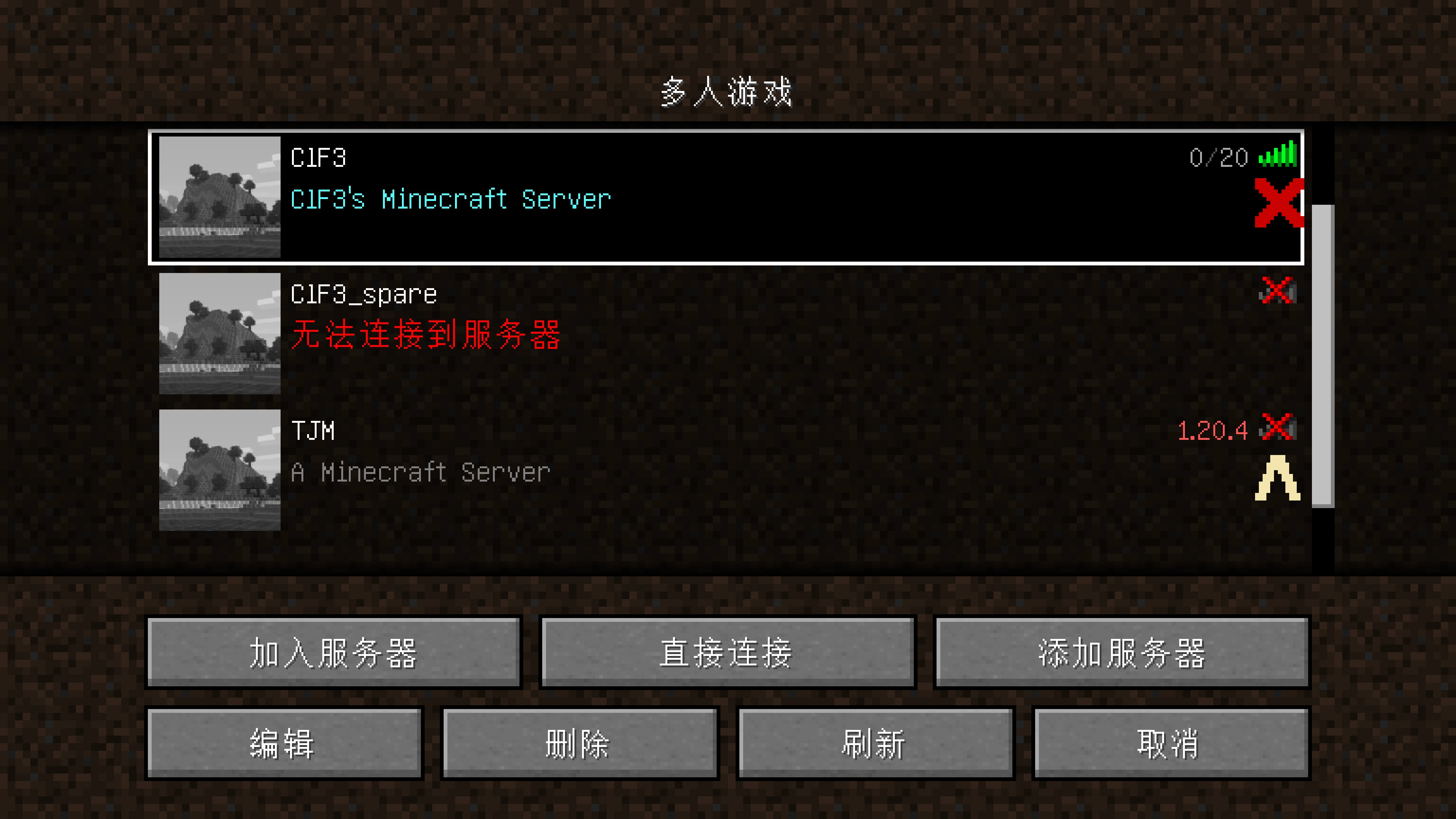 由于我的服务器有公网IP,所以只需要将外网25565端口映射到这台虚拟机上的25565端口就可以了。如果你没有公网IP,可能还需要内网穿透才能让局域网之外的玩家也能访问。配置好网络后,在游戏里输入对应的IP或域名(如果没有使用25565端口,还需指定端口号),就可以看到我们的服务器了: