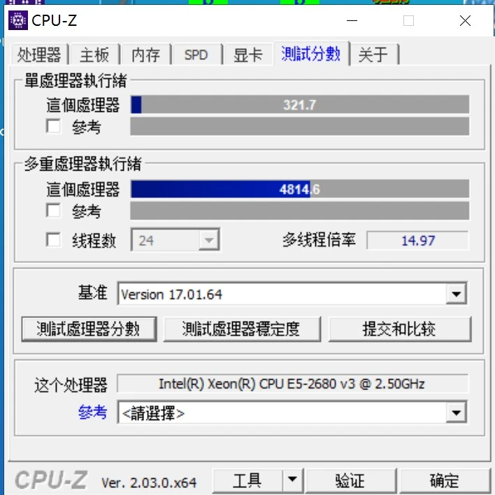 装好系统后简单测试一下性能,首先是CPU,E5-2680V3,14年的古董了,用CPU-Z跑一下分,多核比我的笔记本i7-12700H差了一点,单核嘛……还不到12700H的一半,但30块的东西,也不能奢求太多了。