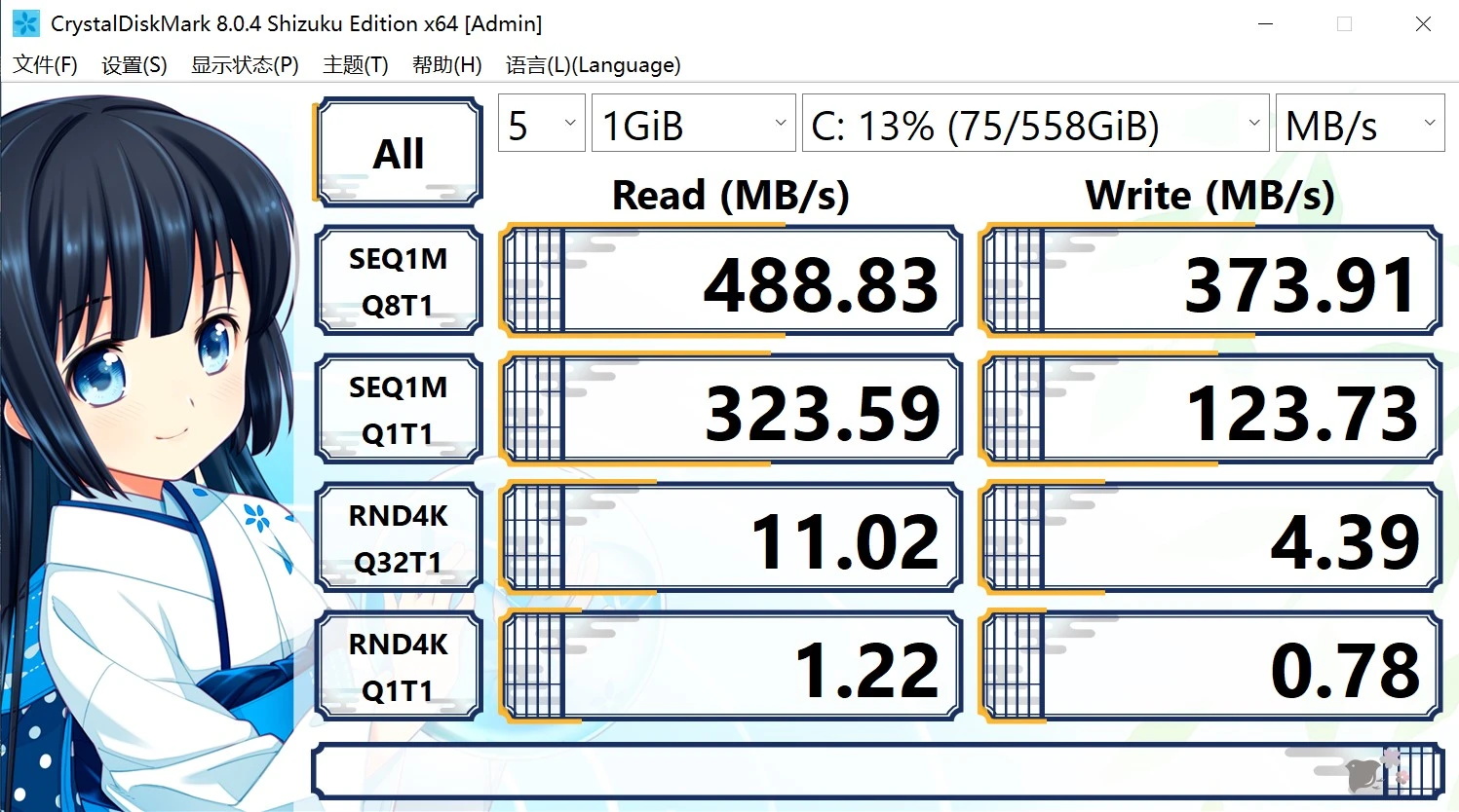 之后是硬盘,硬盘使用了4块戴尔服务器的拆机盘,每块300G,因为年限实在太久(十年左右),怕出问题,所以组了一个RAID10阵列,也就是最后大概有600G的空间可用,速度理论上是单块硬盘的2倍,测试见下图: