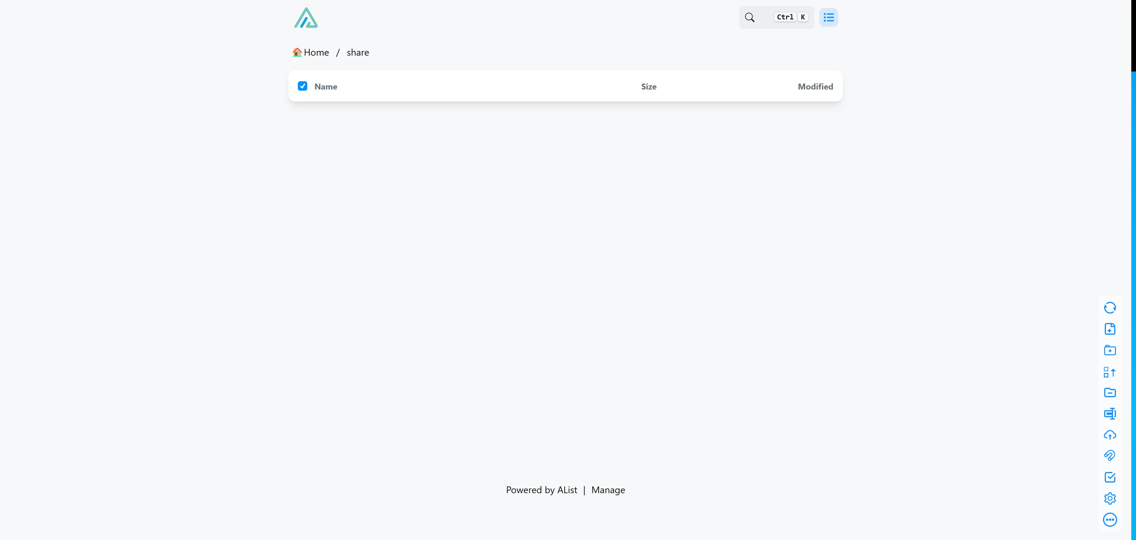 我在自己的Alist根目录建了一个名为share的文件夹,并尝试上传、下载了一些文件,工作都很正常。